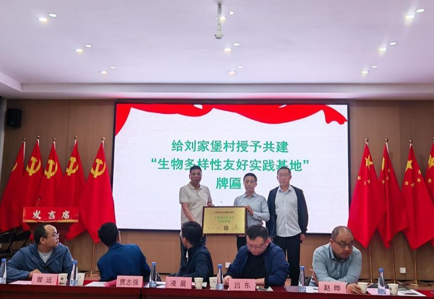 给刘家堡村授予共建“生物多样性友好实践基地”牌匾。